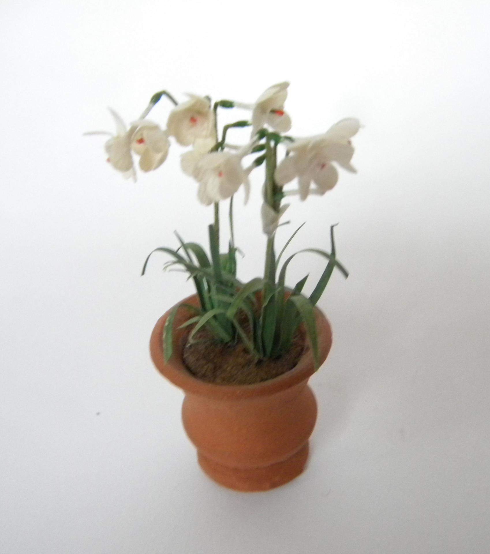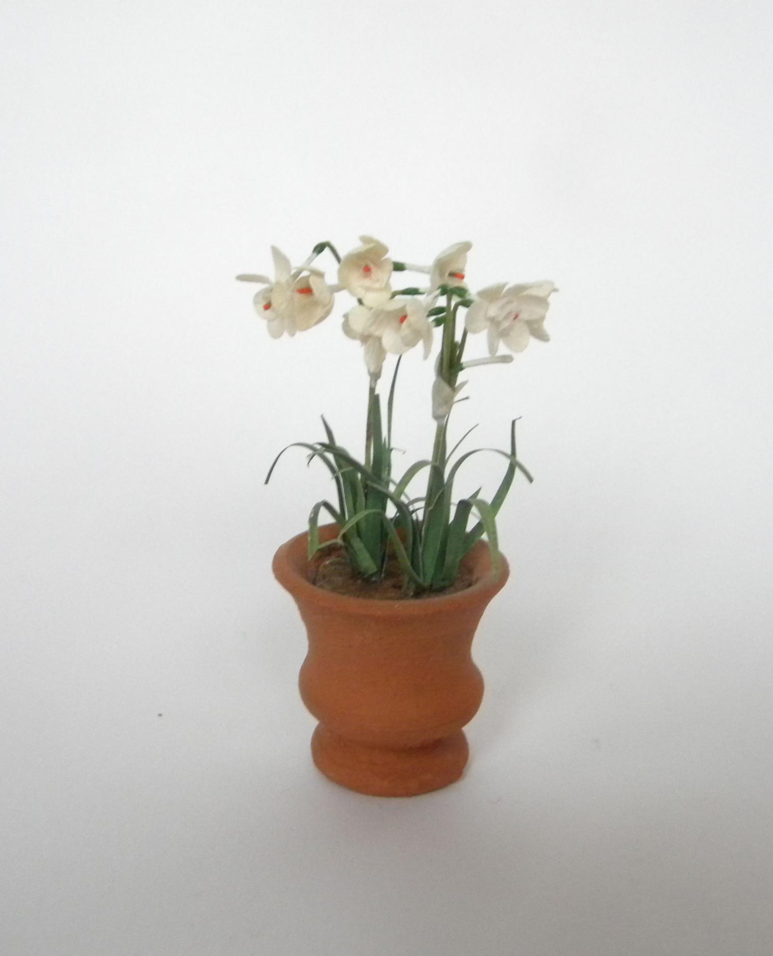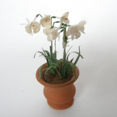 Narcisse multifleurs miniature de couleur blanche contenu dans un pot en terre cuite