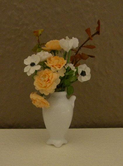 Vase blanc avec anémones et roses