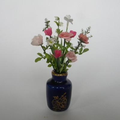 Bouquet miniature d'iris et de jonquilles dans un vase en Limoges bleu de fourNouquet de fleurs miniatures...30,00€ TTC