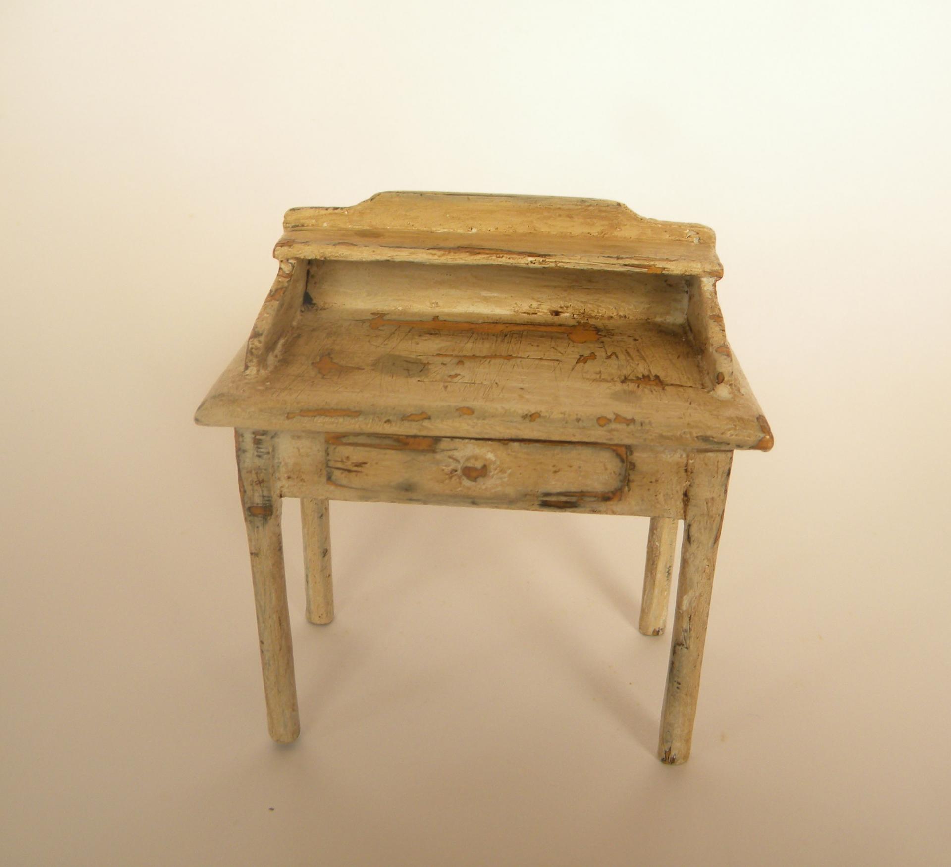 Petit meuble de' toilette miniature en bois patiné dans le style Shabby Chic