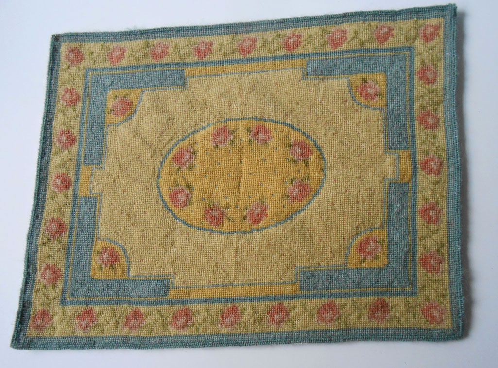 Grand tapis miniature de style XVIII° français à motif floraux pastel sur fonds or pale