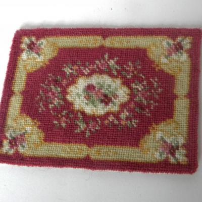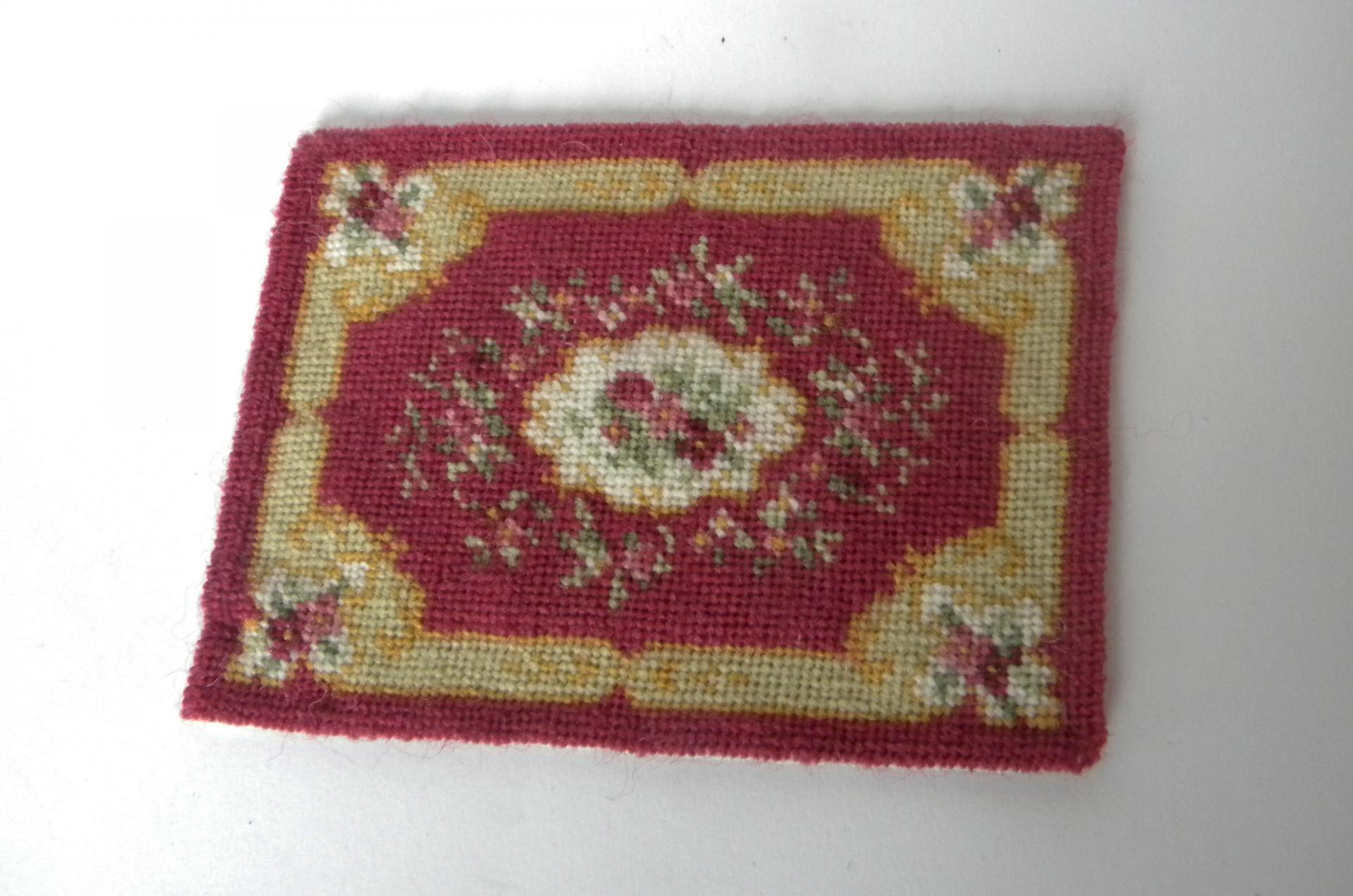 Petit tapis miniature motif Aubusson sur fonds rouge
