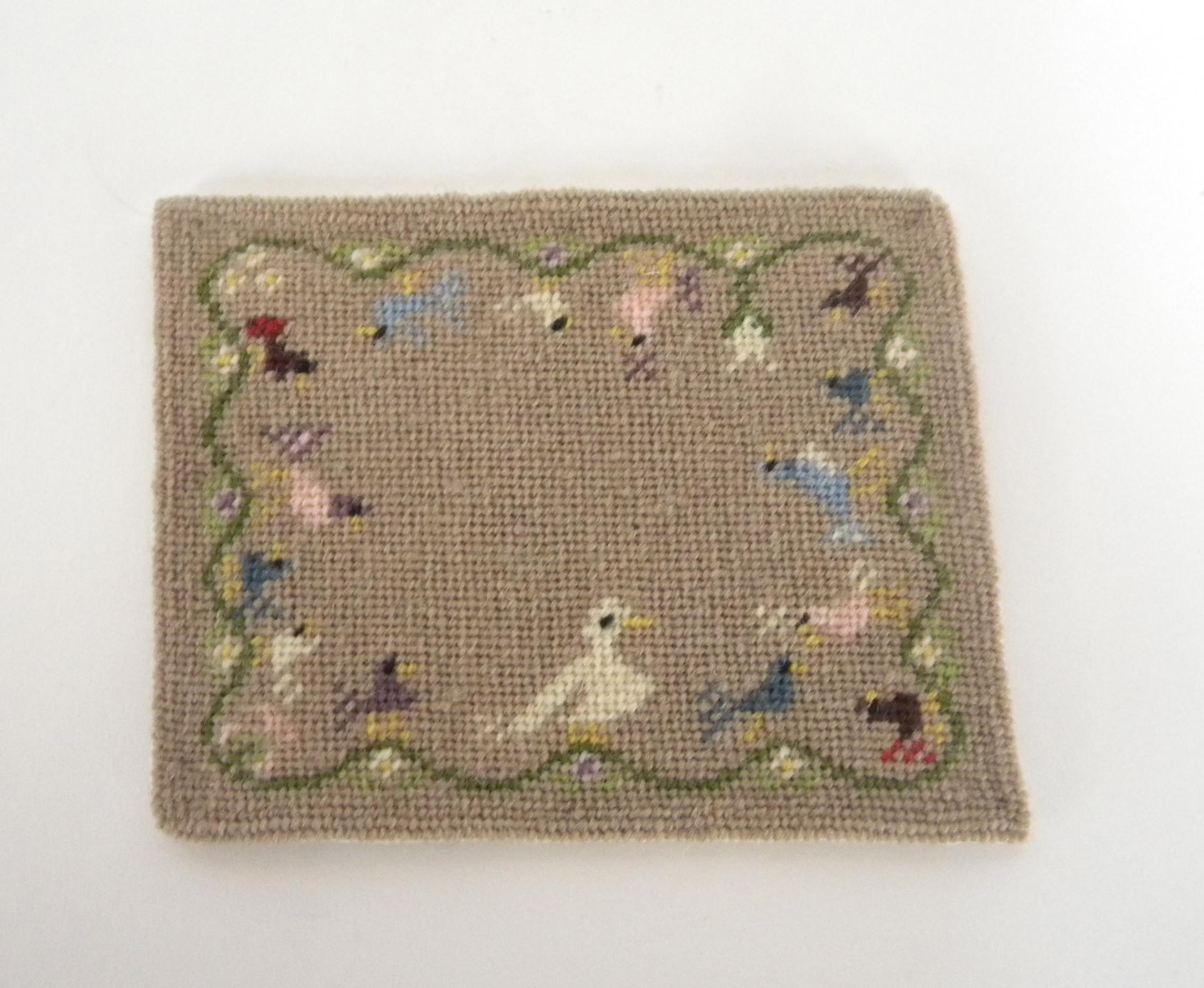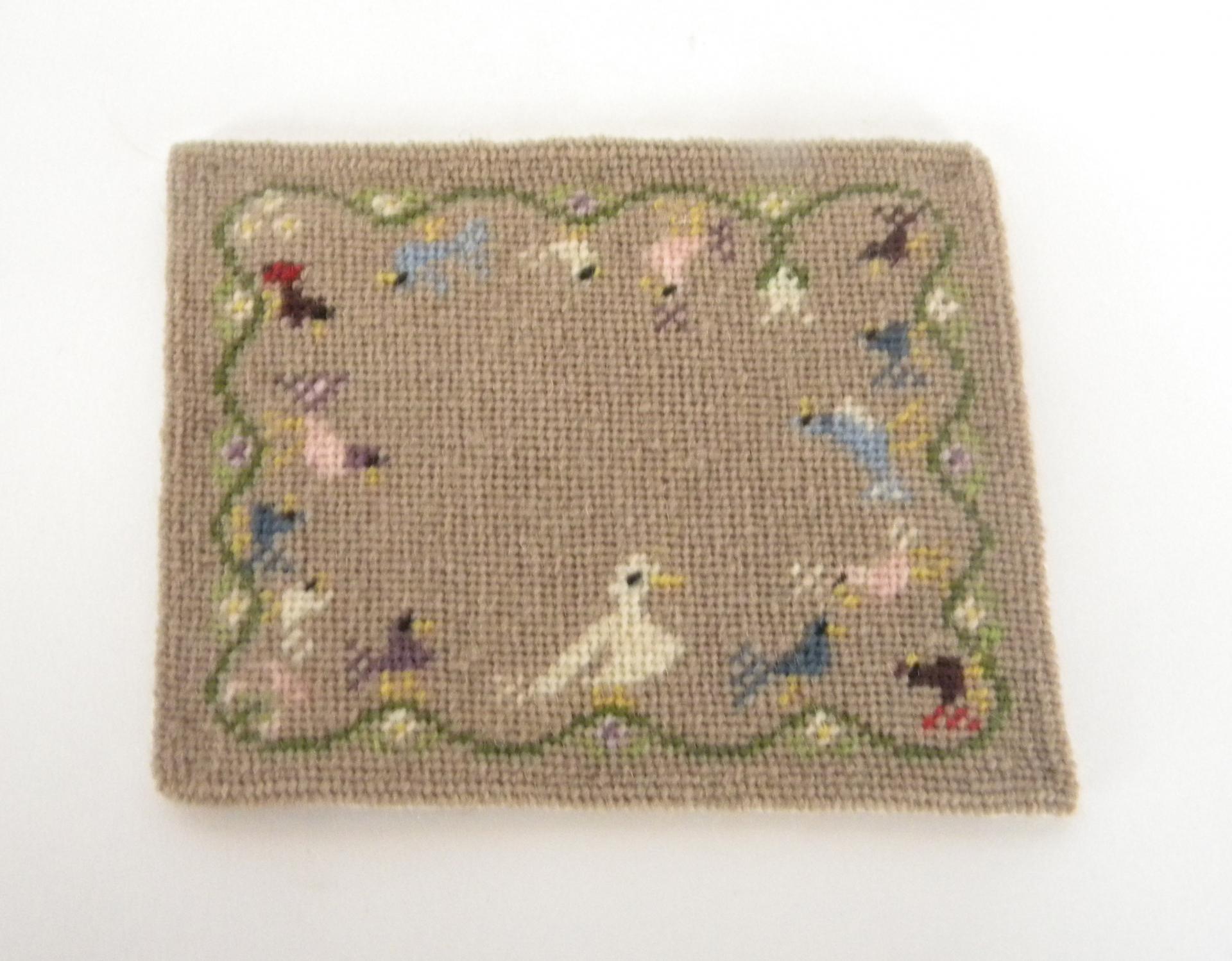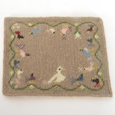 Petit tapis miniature à motif d'oiseaux sur fonds couleur lin