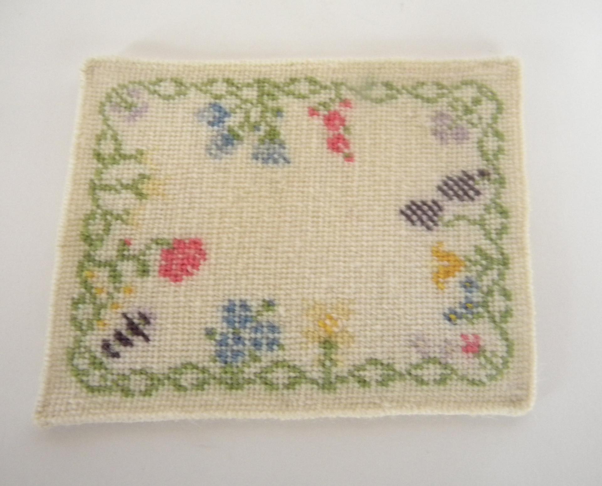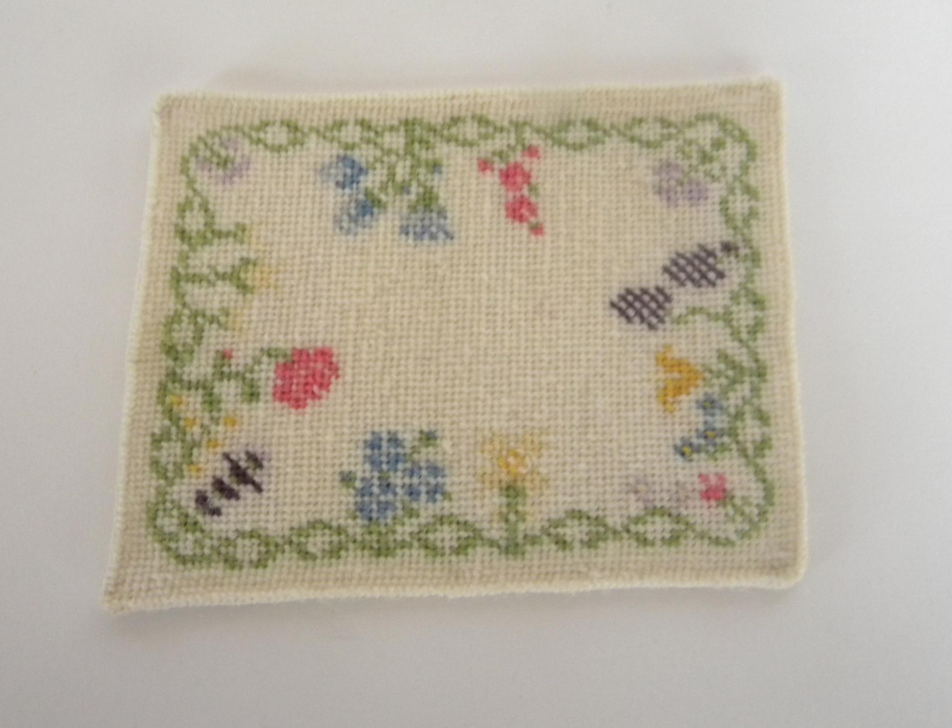 Petit tapis miniature à motif de fleurs sur fonds blanc