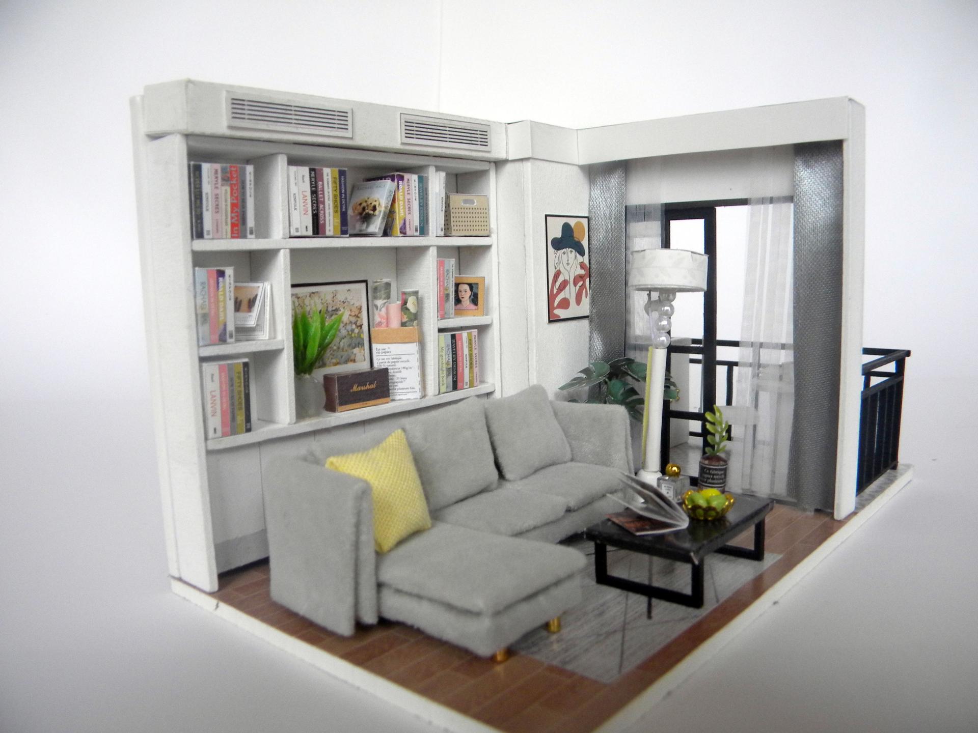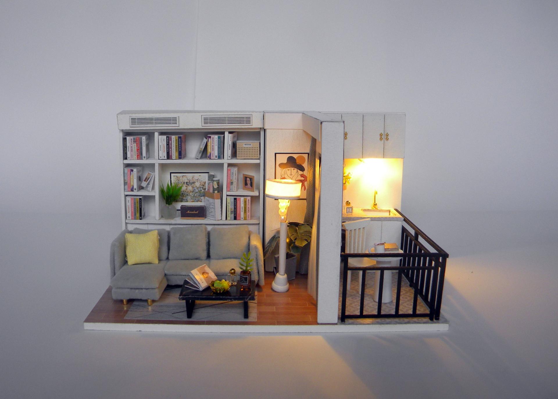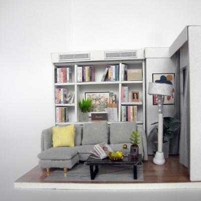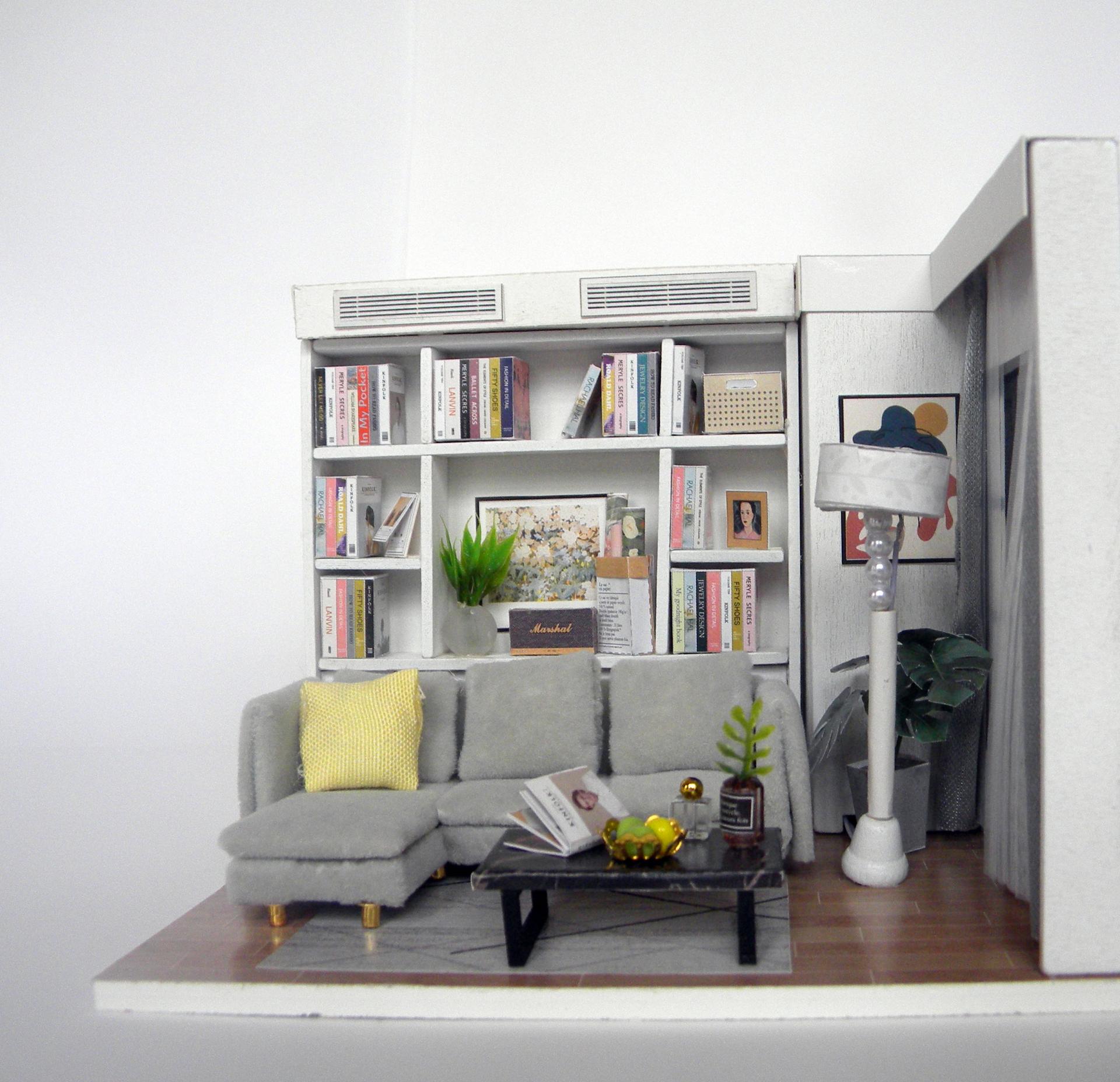 Encore plus petit que l'appartement au 1/24° , le deuxième confinement m'a donné l'occasion de réaliser ce studio au 1/32°